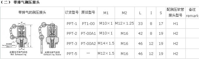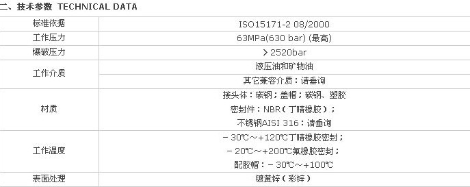一、簡介 INTRODUCTINON 廣泛應用於液壓係統(tǒng)的壓力檢測,潤滑、排氣、壓力係統中油液取樣,個有結構,密封可靠,體積小,重量輕使用方便等特點